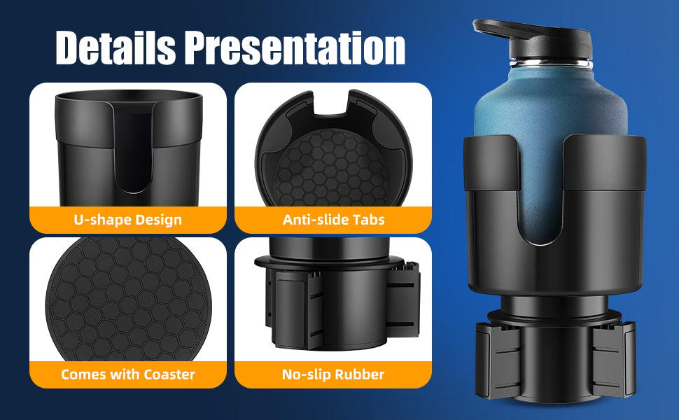 - 【Ultimate Sturdy Design】 Rubber grips inside the cup holder secure bottle tightly, eliminate the noise and movement in driving.